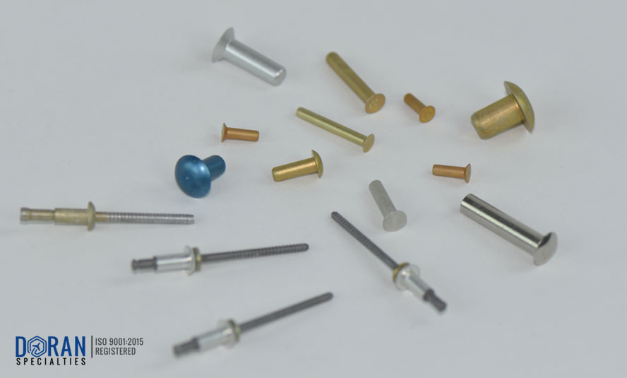 Doran Specialties distributes AN, MS, commercial, blind, and tubular rivets. Blind rivets can be domed, closed end, countersunk, low profile, large flange and brazier. Rivets can be provided in all aluminum, steel/aluminum, all steel, stainless steel and copper.